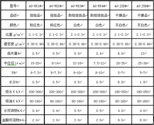 本产品采用SiO2大于85%的硅藻土矿石经过干燥、粉碎、烘干后,采用动态回转窑进行烧锻,煅烧温度在700-900摄氏度之间,煅烧过程中加入适量的助溶剂,煅烧后采用分级分选机进行精细分选后,经质检员检测合格后入库。